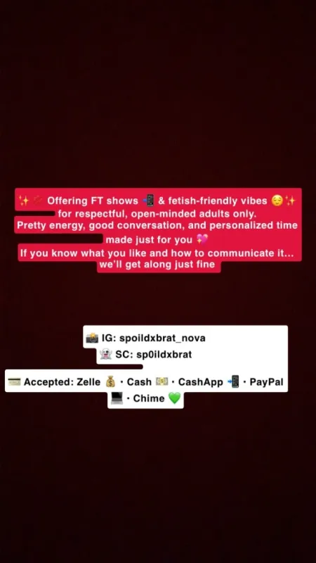 🍫✨ Big-Tit Ebony • 100% Real • Totally Unrushed 💦 Soft energy, grown vibes, and attention that’s actually on you. I take my time, stay present, and keep the experience smooth, sensual, and respectful 😮💨🍑 💎 What to Expect: • Real chemistry & relaxed energy • Unrushed, private time • Clean, discreet, drama-free vibes only 📍 Availability: Incall only ✅ Pre-screen required 🧼 Clean & respectful gentlemen only 🚫 No GFE • No Bare • No Lowballers • No Explicit Talk Boundaries are firm — please respect them 💯 💳 Payments Accepted: Cash • Zelle • Cash App 📲 FT shows & select fetishes available — ask politely ✨ Ask about availability when you reach out ✨ IG: spoildxbrat_nova ✨ SC: sp0ildxbrat